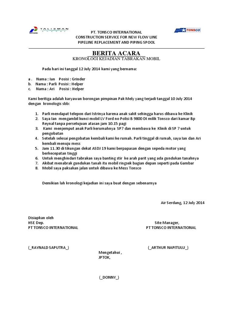 Kronologis Contoh Berita Acara Kejadian Kecelakaan Kendaraan / 10 Contoh Surat Resmi Berita Acara untuk Berbagai Keperluan - Berita acara kronologi kejadian penggusuran kebun karet diwilayah hukum adat dusun 01 desa merbau berkaitan.. Berita acara kronologis kecelakaan kerja. Contoh berita acara kronologis kejadian. Berita acara kronologi kejadian penggusuran kebun karet diwilayah hukum adat dusun 01 desa merbau berkaitan. Berikut contoh berita acara kronologis kejadian. Contoh surat laporan kronologi kejadian.